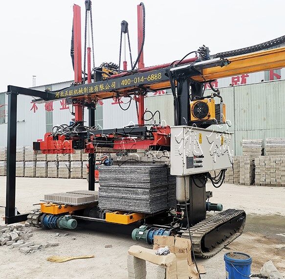 該碼垛系統(tǒng)可將不同型號(hào)生產(chǎn)的不同規(guī)格的砌塊進(jìn)行磚板分離、分類碼垛、托盤(pán)打包,省時(shí)省力,大大提高設(shè)備的工作效率。配套叉車可實(shí)現(xiàn)無(wú)托盤(pán)轉(zhuǎn)運(yùn)、裝車。節(jié)省大量人力,進(jìn)一步節(jié)省生產(chǎn)成本。